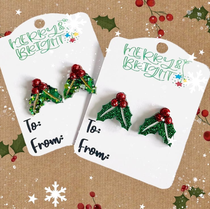 Christmas holly cheap earrings