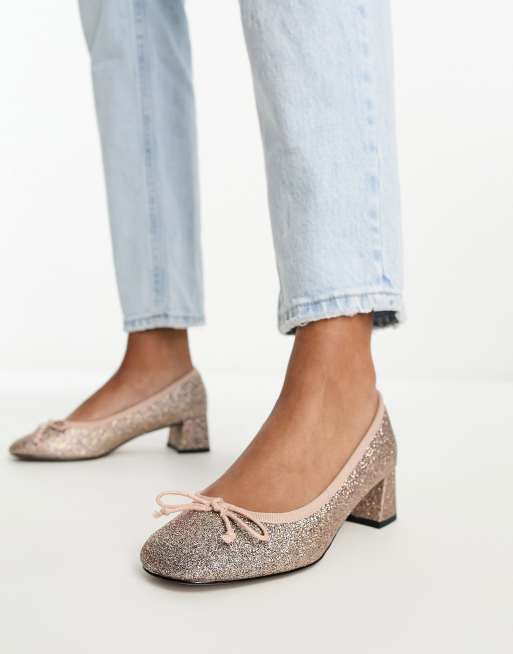 Glitter mid cheap heel court shoes