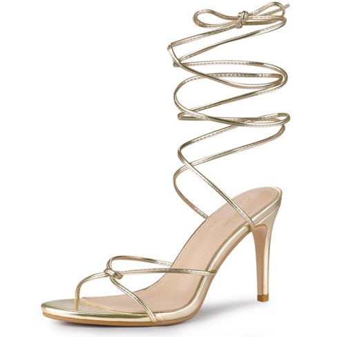Gold strappy cheap stiletto high heels