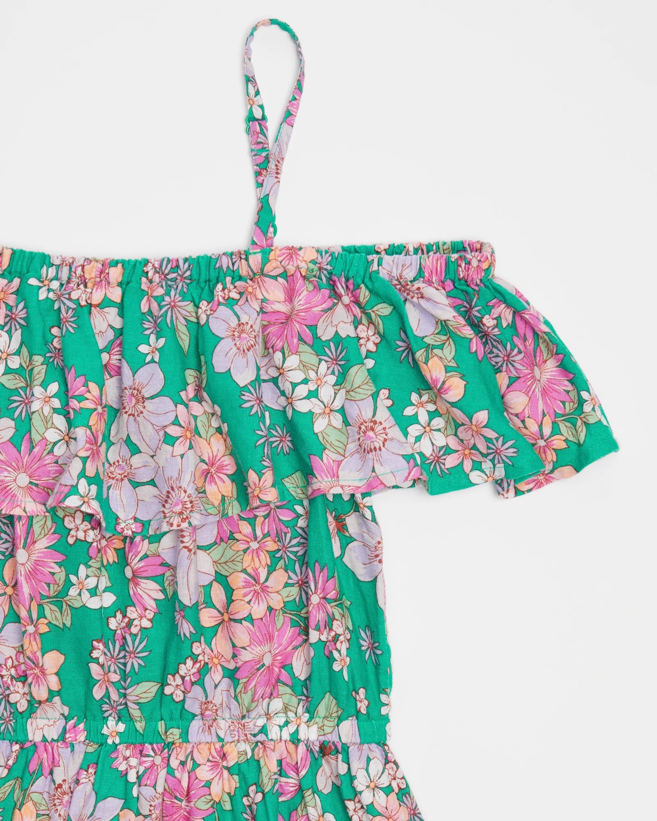Product Item: Green floral cheap cold shoulder dress