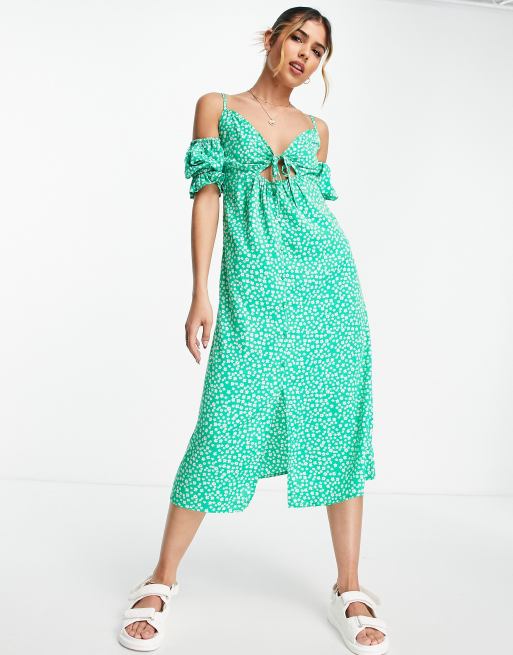 Green floral cheap cold shoulder dress