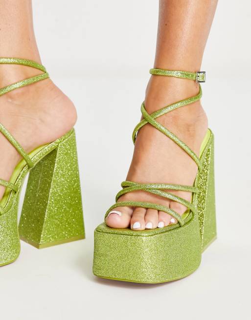Green glitter cheap high heels