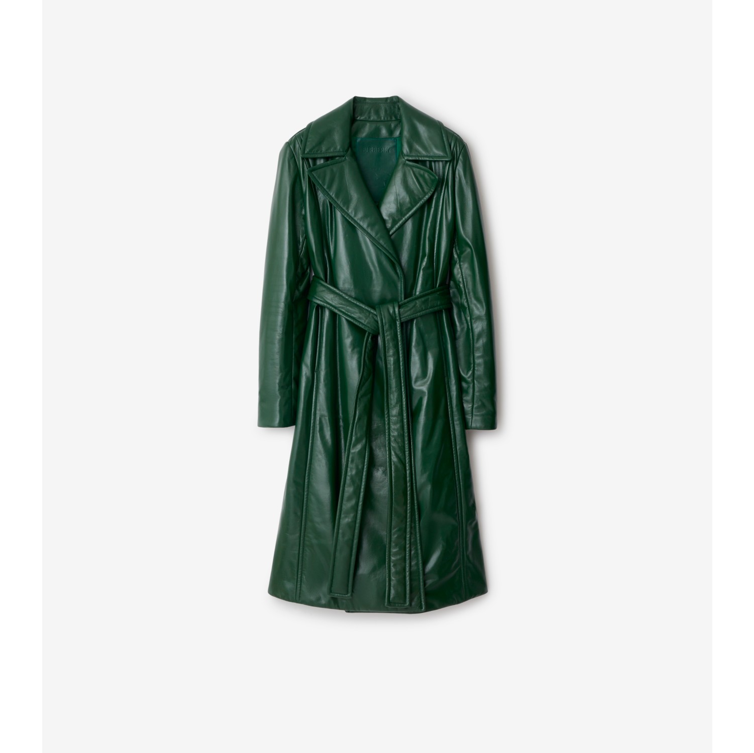 Green leather cheap trench coat
