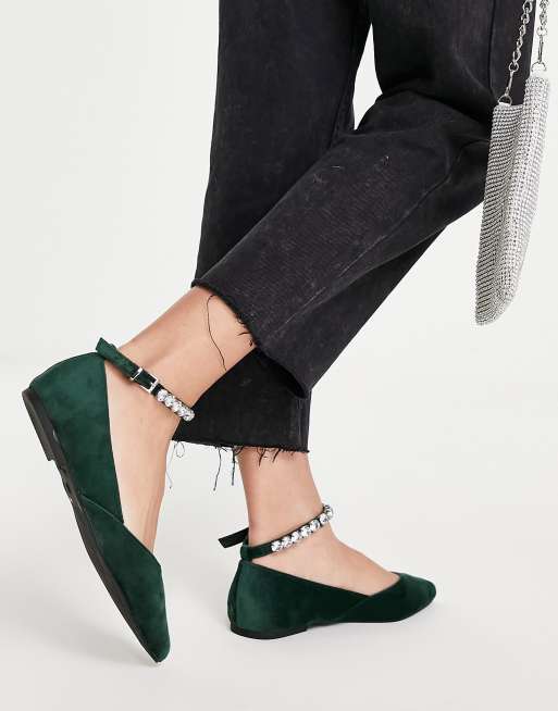 Green velvet cheap flats