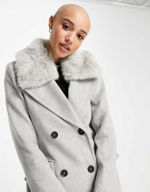 Grey faux cheap fur collar coat