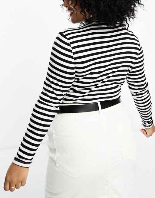 High neck black cheap and white striped top