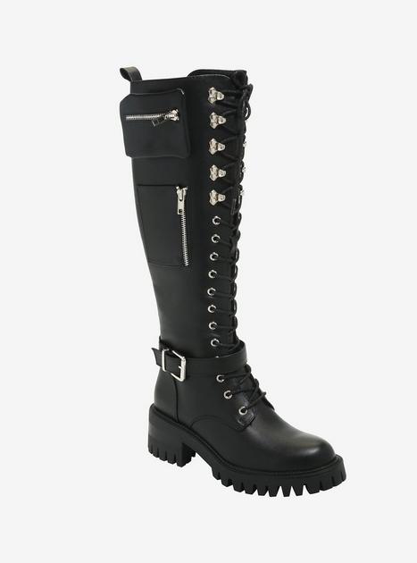 Knee high cheap heeled combat boots
