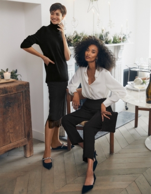 Ladies black trousers cheap with satin stripe