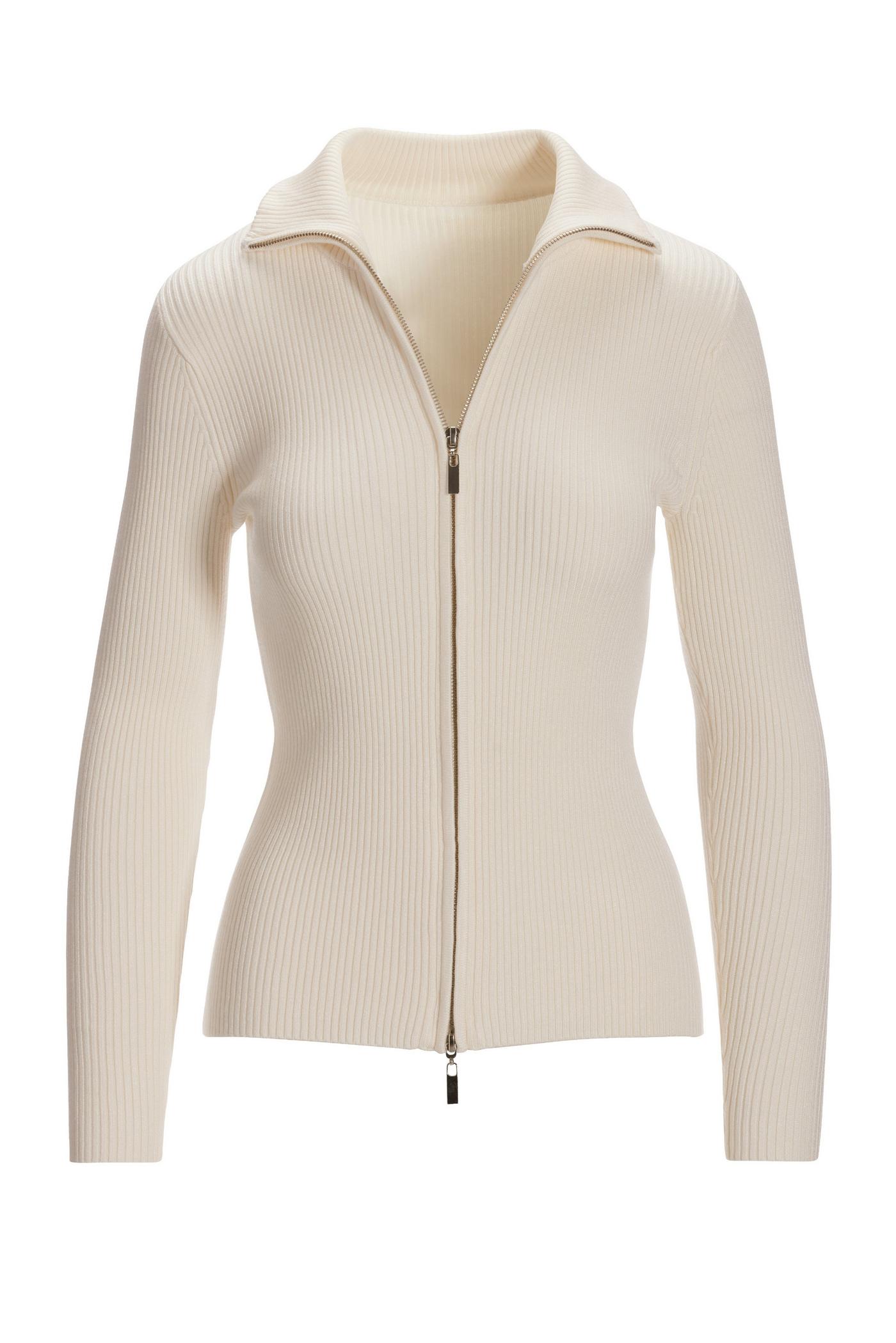 Product Item: Ladies white cheap zip up cardigan