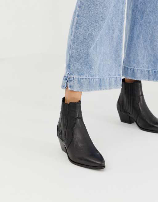 Product Item: Mango leather western cheap chelsea boot in black