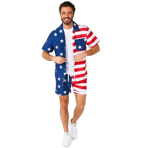 Mens american cheap flag overall shorts
