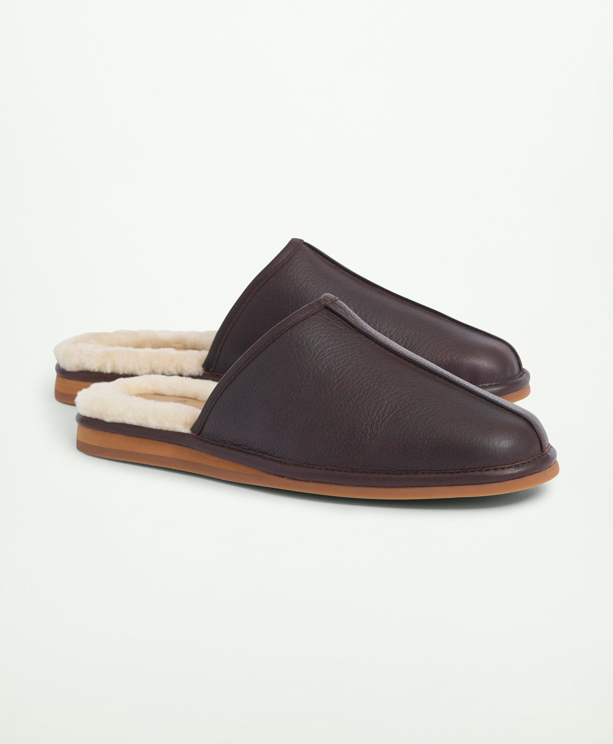 Mens leather cheap indoor slippers