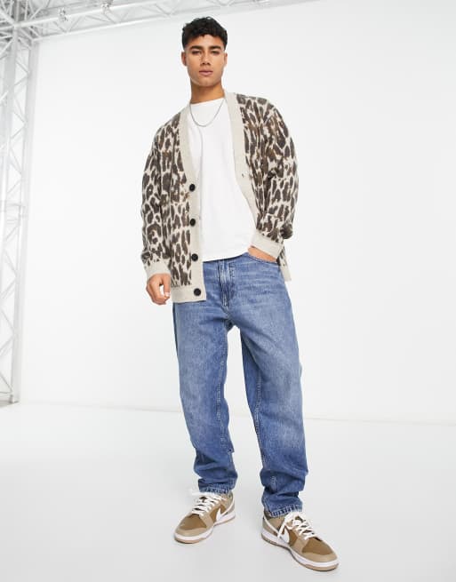 Mens leopard cheap print cardigan