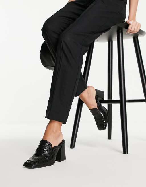 Mid heel cheap loafers black