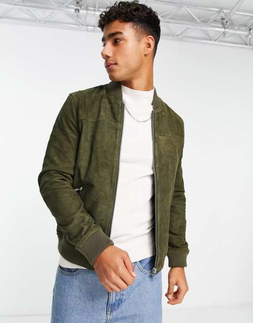Olive suede cheap bomber jacket