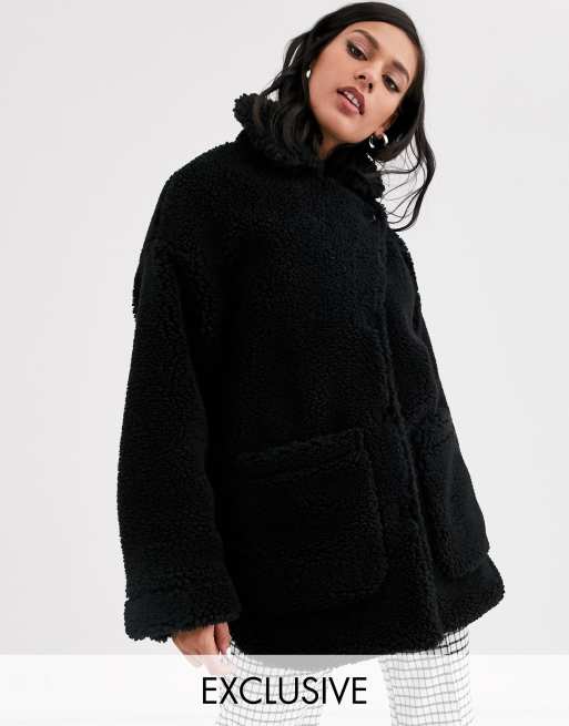 Oversized black cheap teddy jacket