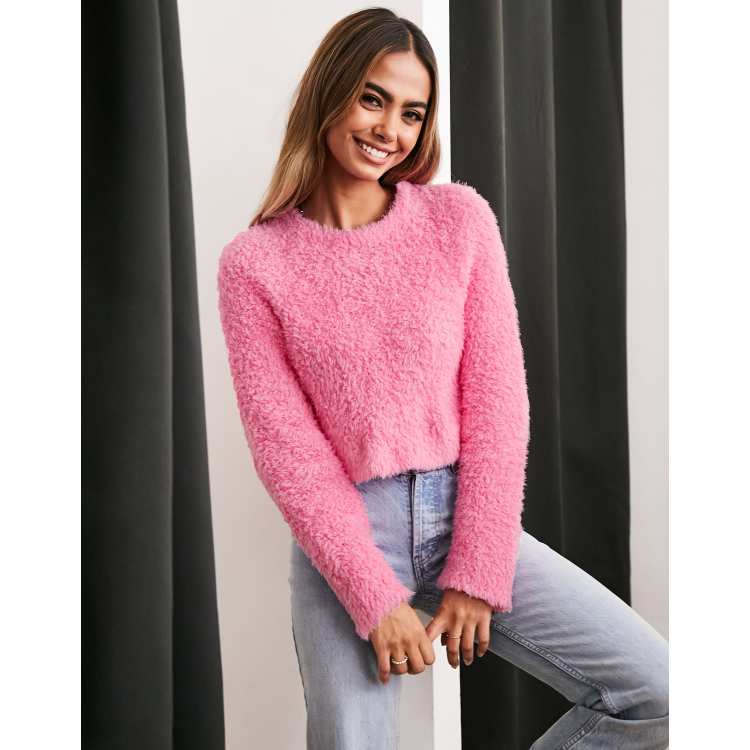 Pink fluffy cheap cropped jumper