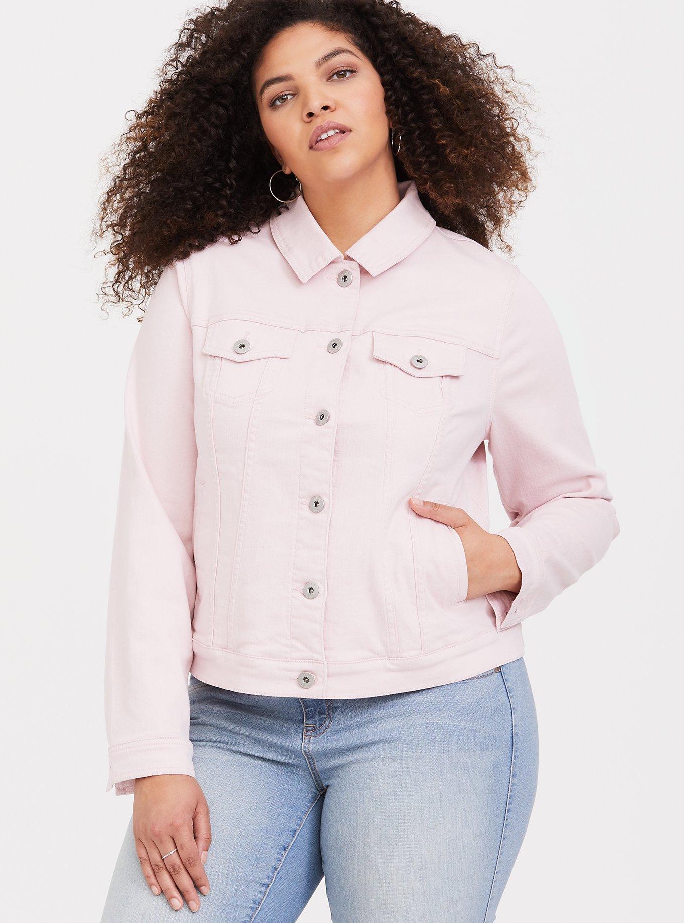 Pink jean cheap jacket plus size