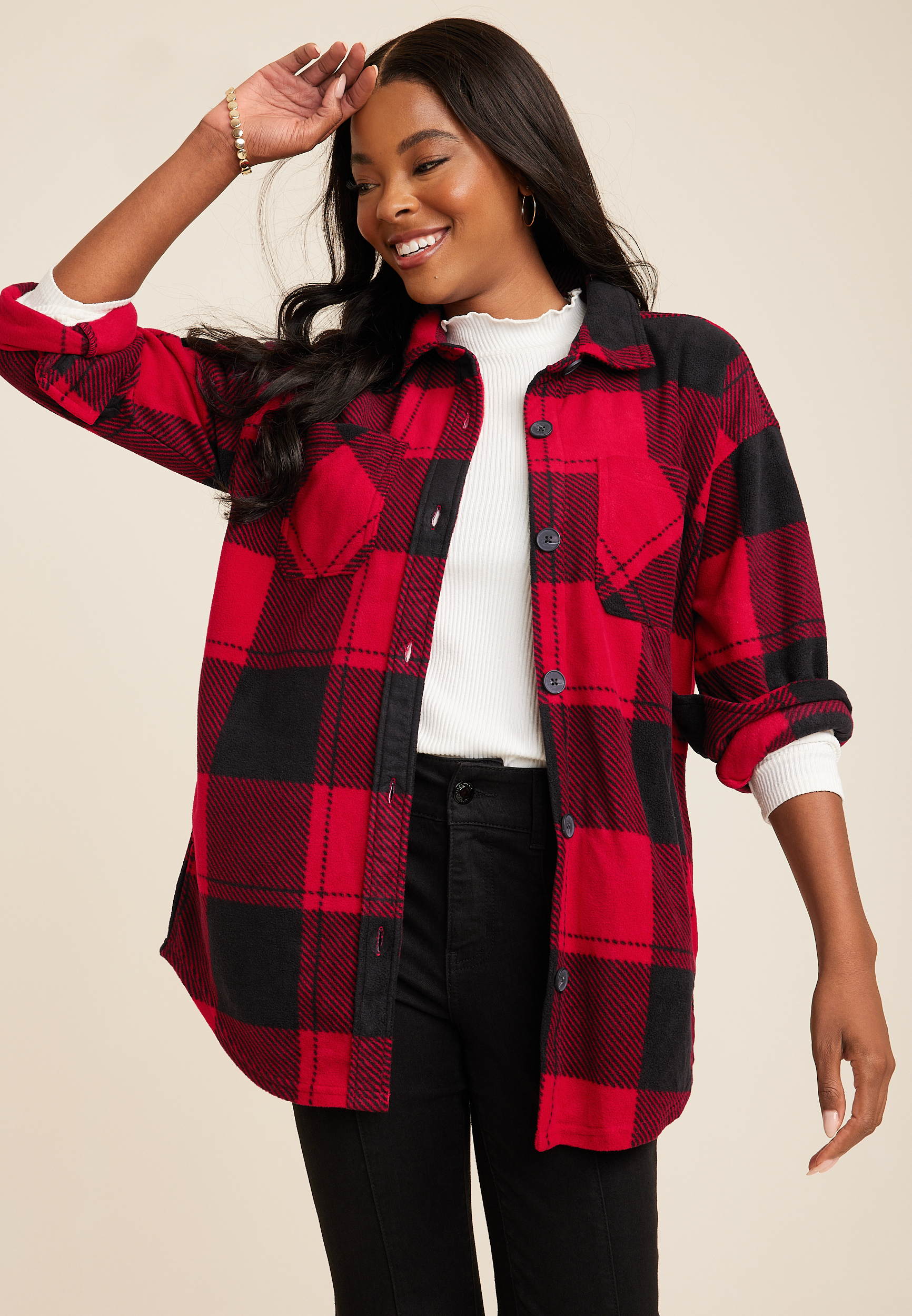 Product Item: Red and cheap black plaid sweatshirt