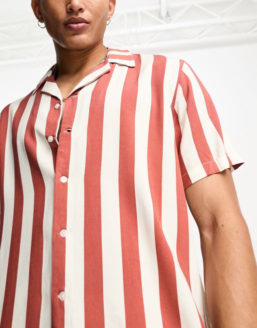 Red and white cheap striped short sleeve shirt