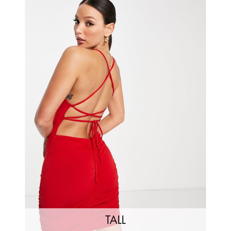 Red cowl cheap neck mini dress