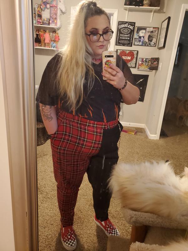 Red plaid cheap pants hot topic