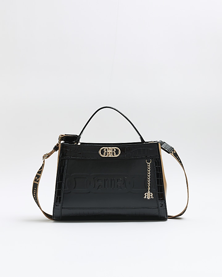 River island black cheap croc embossed bag