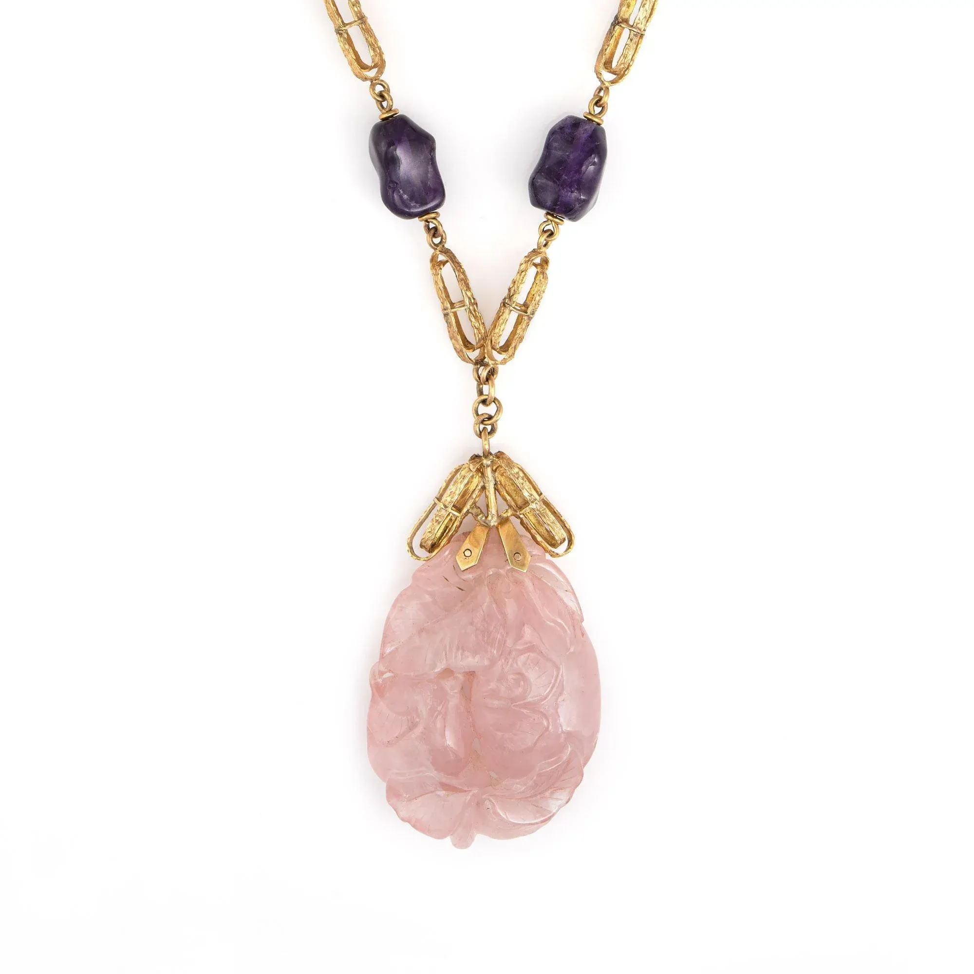 Rose quartz cheap 14k gold necklace