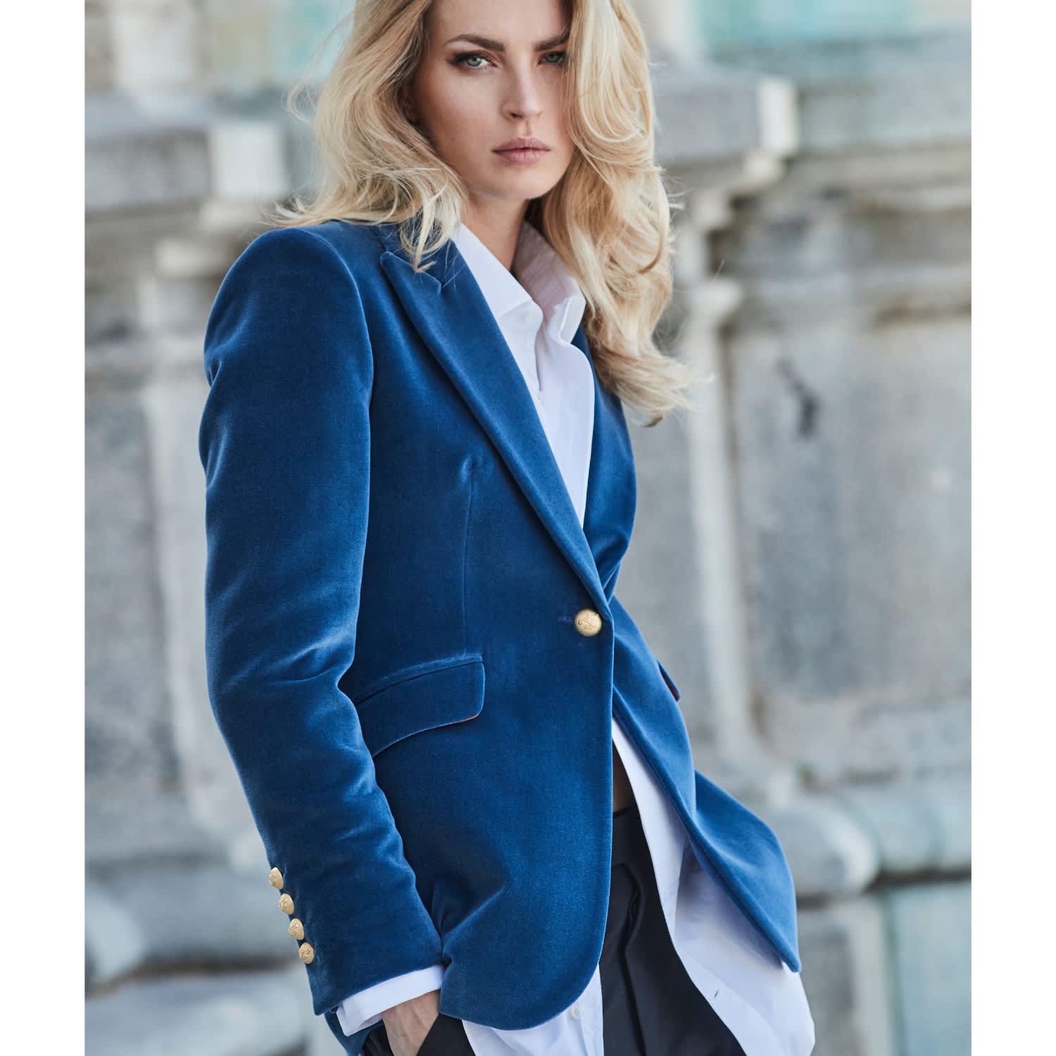 Product Item: Royal blue cheap velvet blazer womens