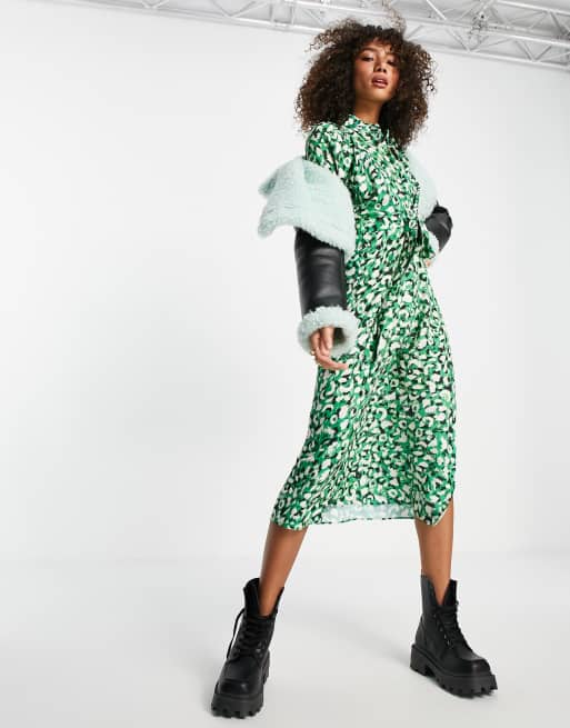 Topshop green cheap leopard print dress