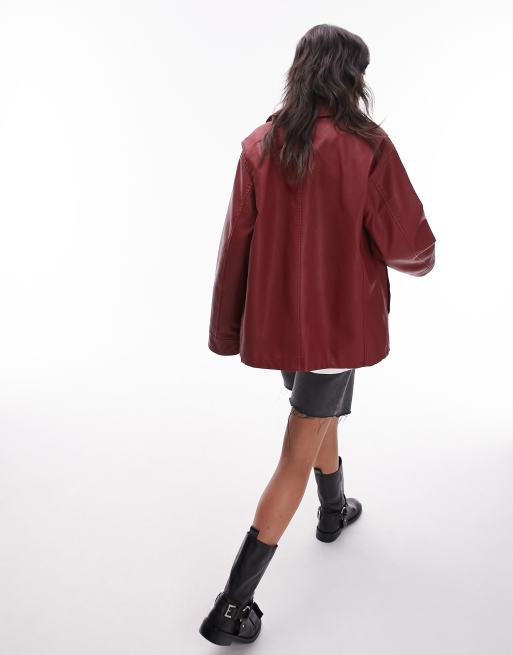 Topshop red cheap leather jacket