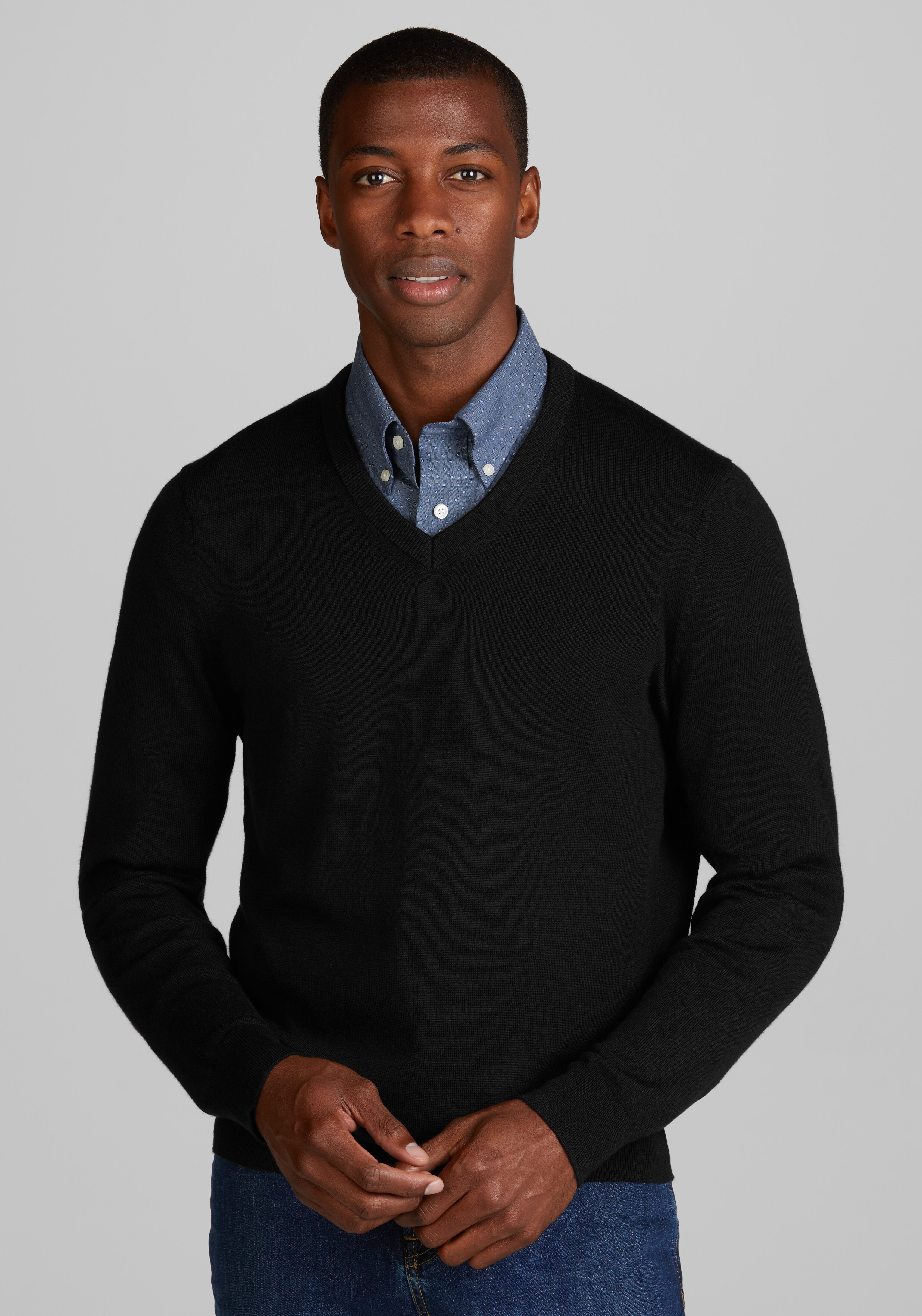 V neck sweater cheap without collared shirt