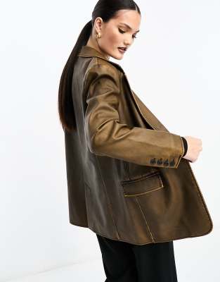 Vintage leather cheap blazer