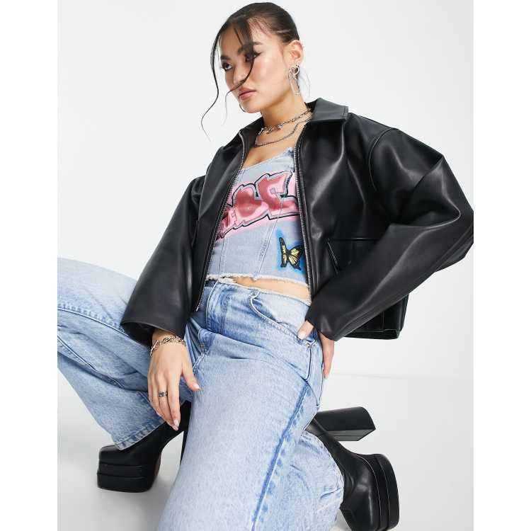 Asos cropped cheap leather jacket