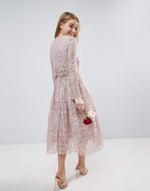 Asos design long sleeve lace top prom midi cheap dress