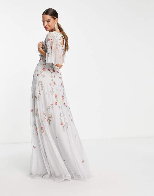 Product Item: Asos design tall floral embroidered dobby cheap mesh flutter sleeve maxi dress