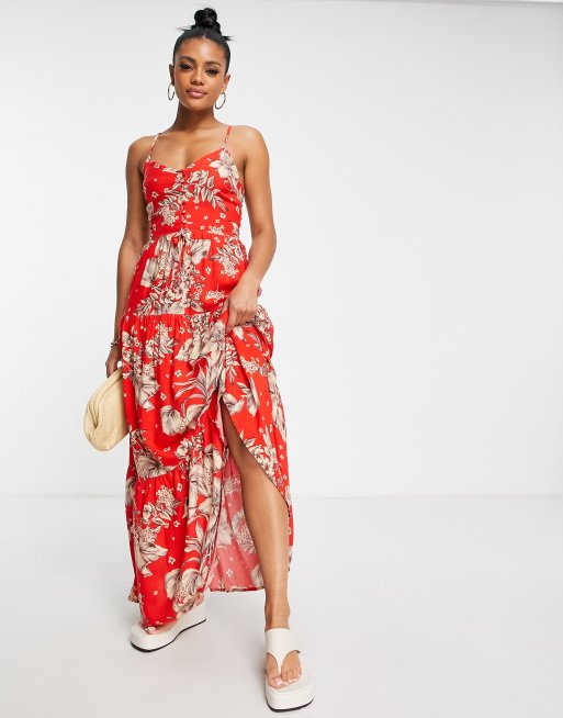 Asos red cheap floral maxi dress