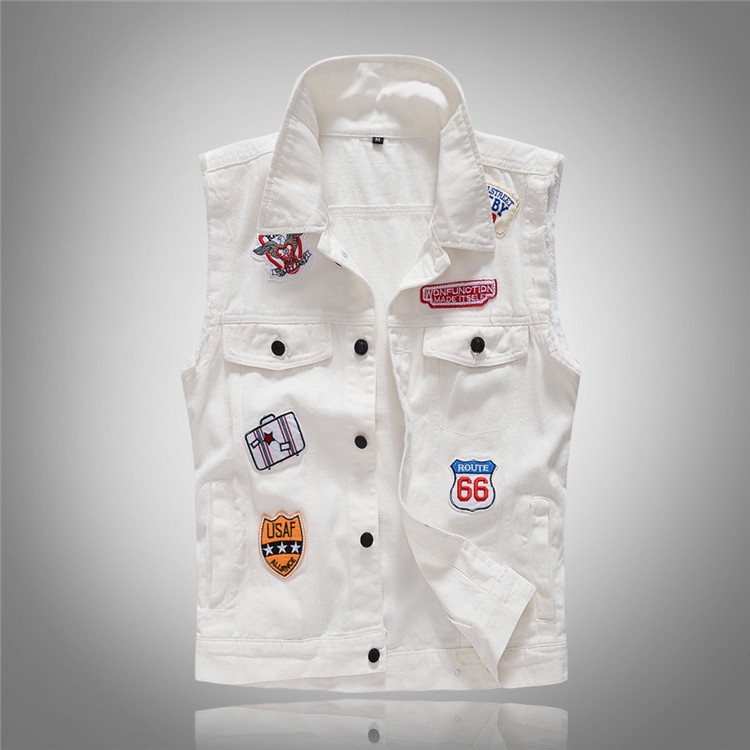 White denim cheap jacket with patches