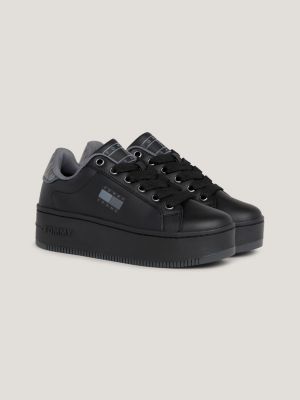 Womens black cheap leather trainer