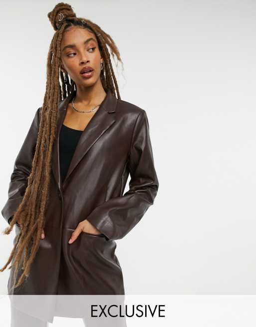 Fake leather cheap blazer