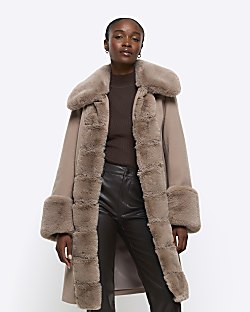 Faux fur cheap black long coat