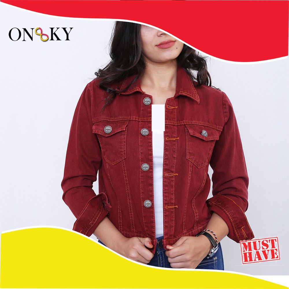 Jaket denim cheap maroon