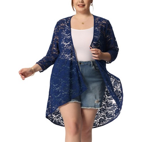 Navy blue cheap sheer cardigan