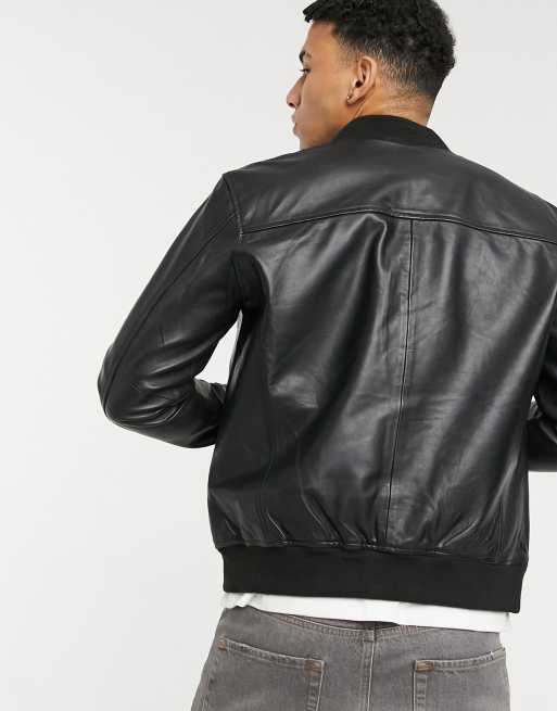 Selected homme cheap leather bomber jacket
