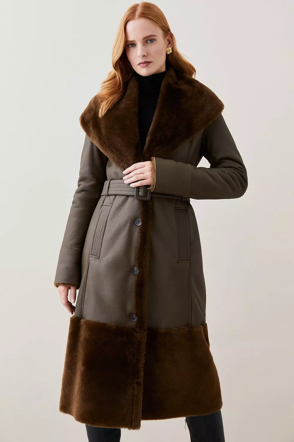 Shearling wrap cheap coat