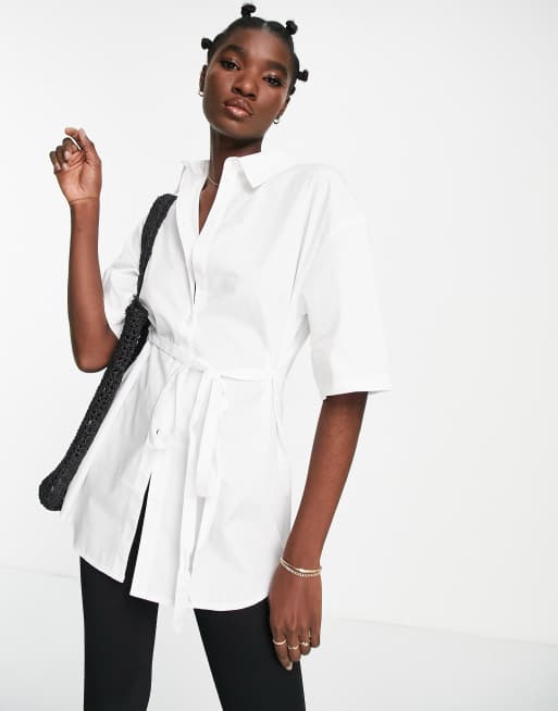 Short sleeve button cheap down with tie