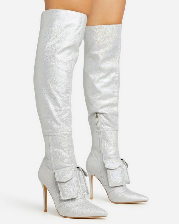 Silver knee cheap high boots