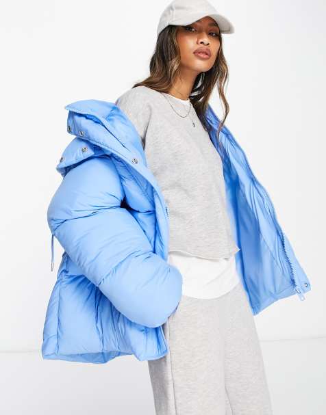 Blue long cheap puffer jacket women's