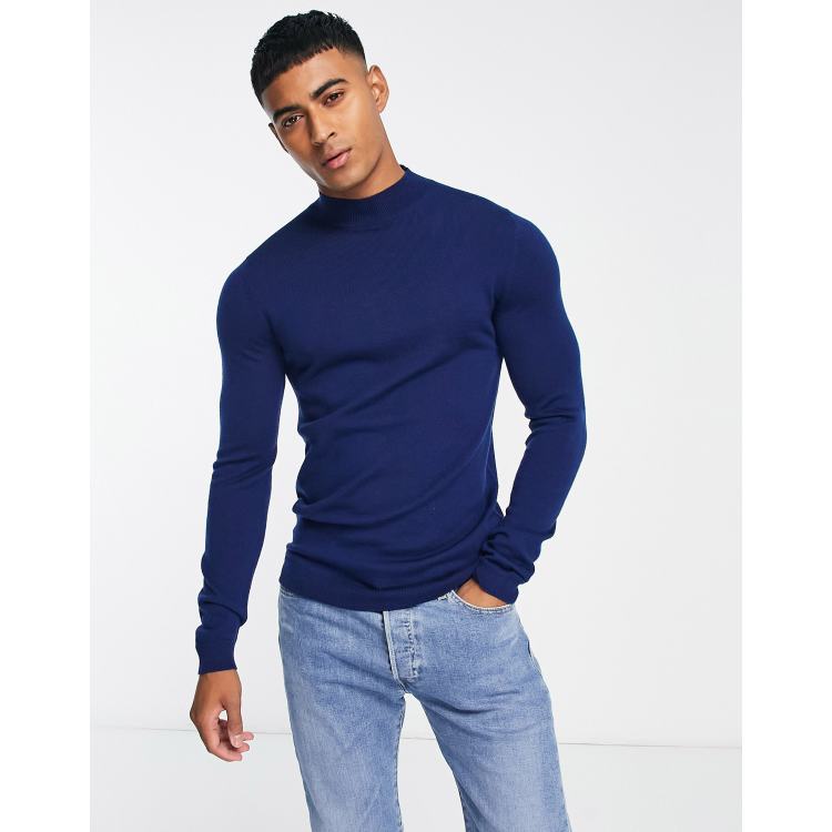 Blue turtleneck cheap shirt