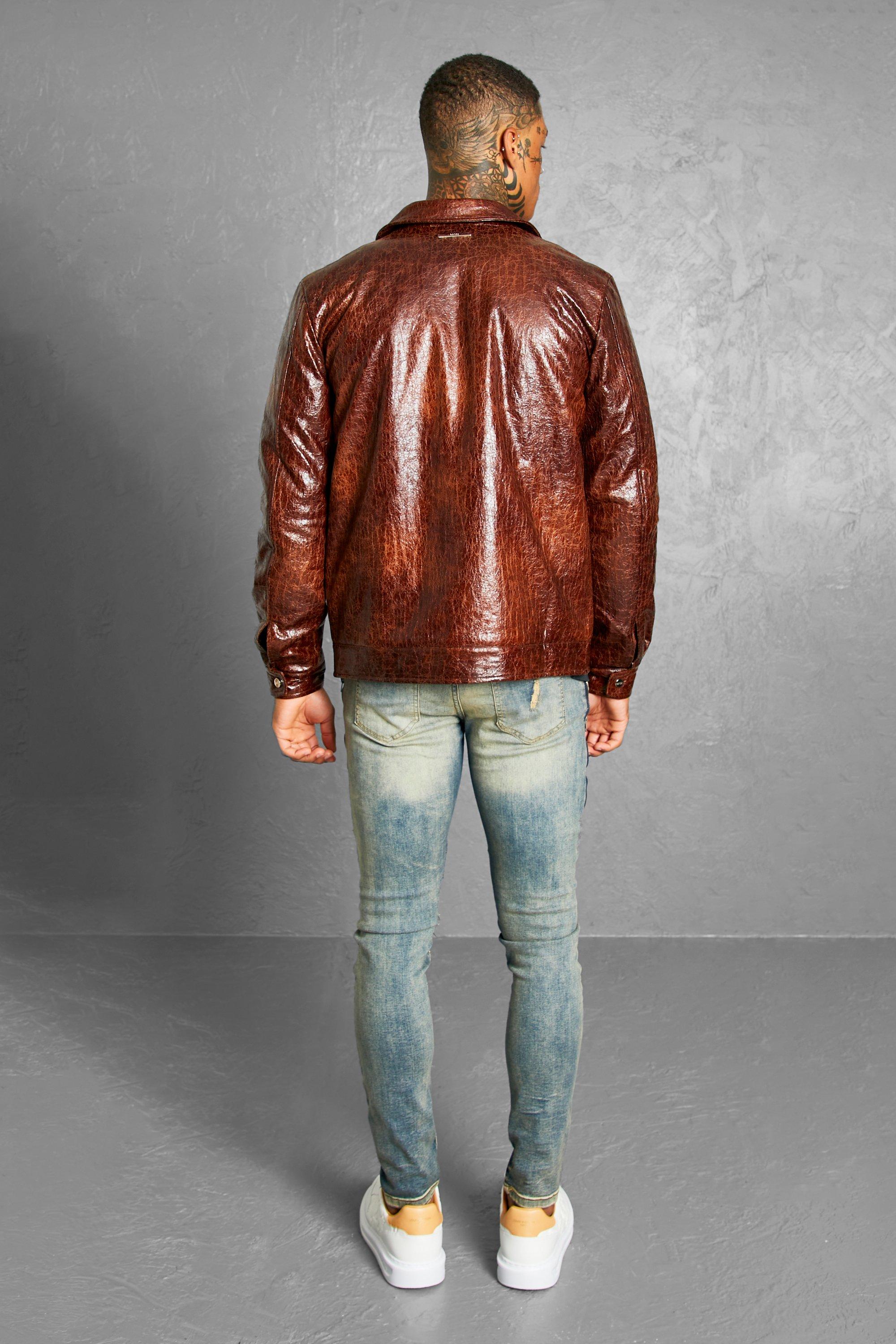 Boohoo leather cheap jacket mens
